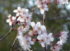 数年前の梅の花がきれいに咲いていた頃、たくさんの小鳥が梅の枝から枝へを忙しそうに飛んでいました。